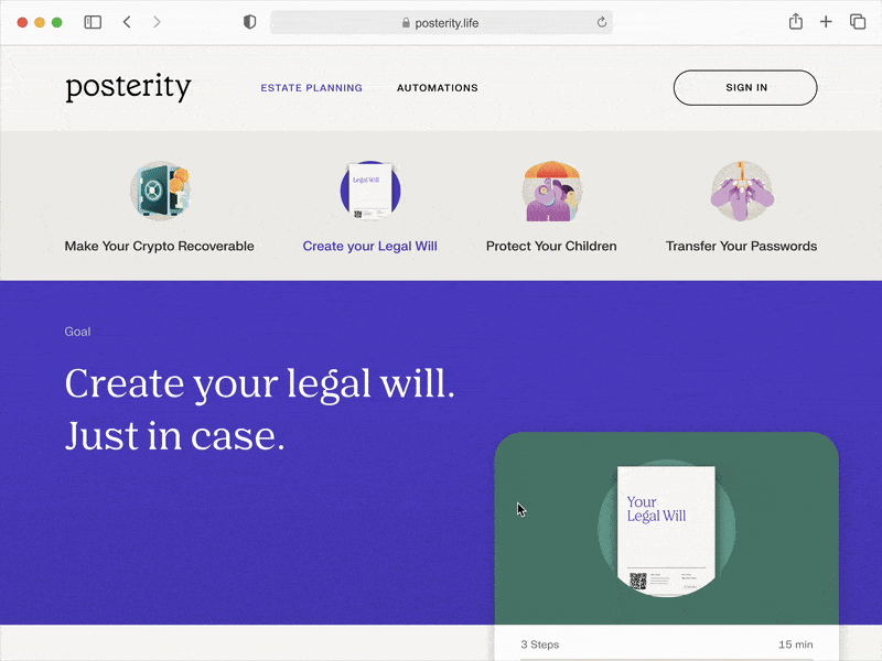 By removing account walls, meeting people on topic pages, and reframing the will as approachable goals, the experience turned a high-anxiety task into a guided, momentum-building journey. Users now see value in under a minute, stay oriented through clear next steps, and finish with state-specific signing they trust. I led the end-to-end experience across strategy, IA, and execution, including hi-fi visual design, interaction and motion design, and orientation patterns. Future extensions could include richer life-event triggers, deeper collaboration, and localized guidance to keep plans current without becoming another dreaded task.